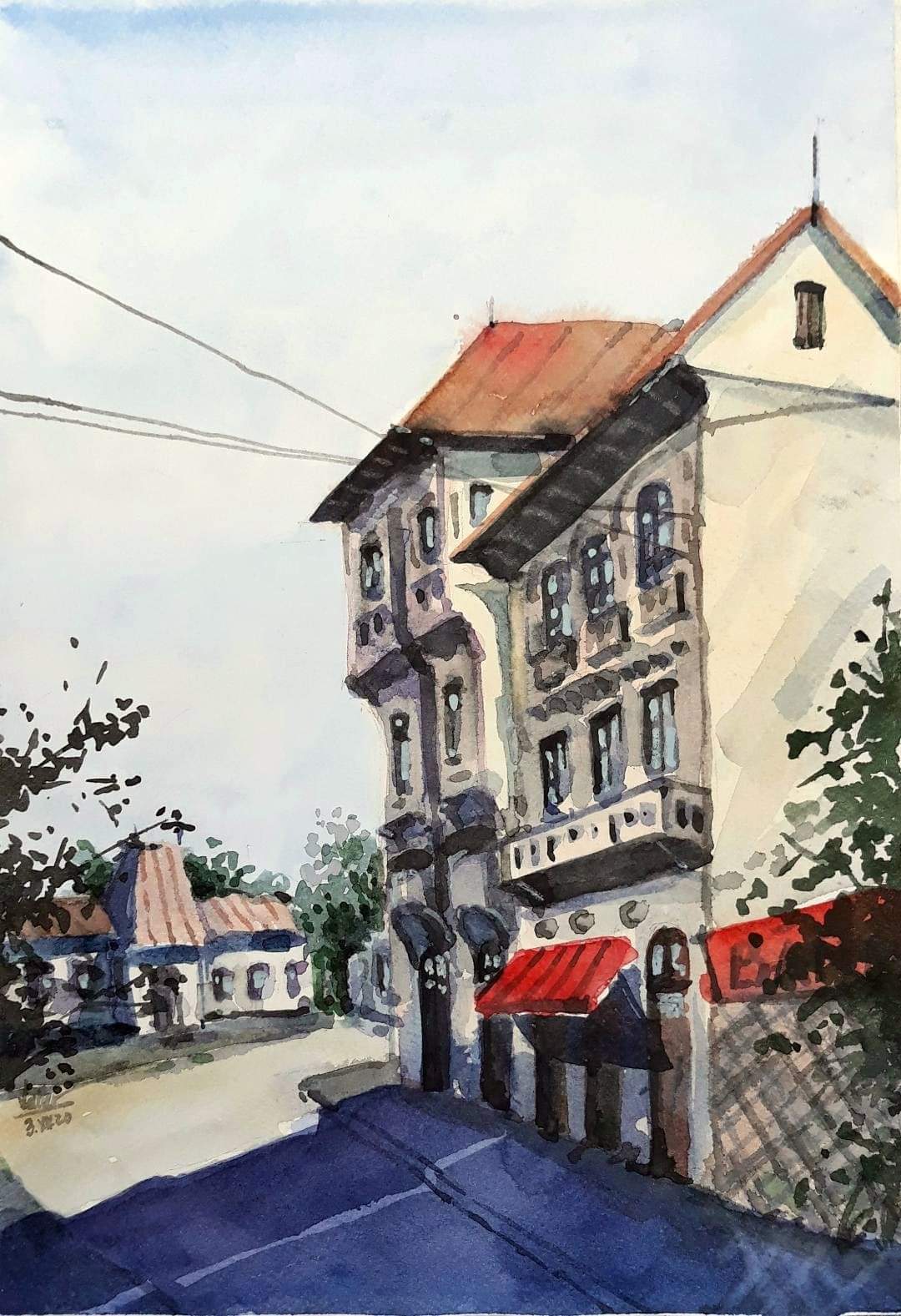 Blocul Toboc (Ploiești) varianta 2 – acuarelă/hârtie Aquafine – 34×23,5cm Valter Paraschivescu