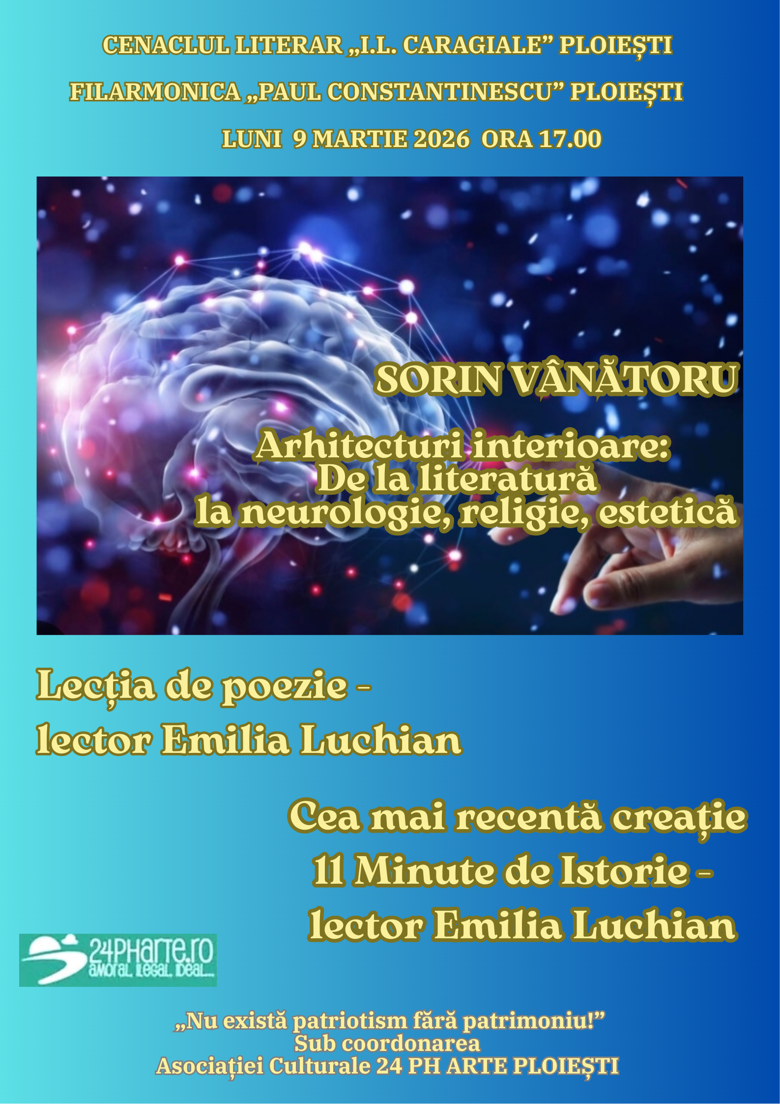 Programul Cenaclului Literar „I.L. Caragiale” Ploiești din 09.03.2026