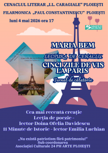 Vă așteptăm la o nouă ședință a Cenaclului nostru luni, 4 mai 2026, ora 17:00, în Sala Studio a Filarmonicii „Paul Constantinescu” Ploiești.