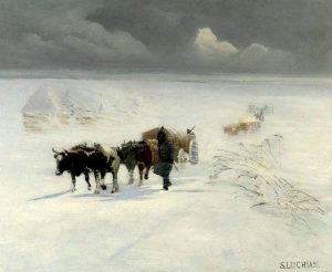 Tabloul se numeşte Convoi la Plevna. E vorba de acei ţărani care i-au bătut pe turci, una din marile puteri ale lumii, şi i-au câştigat ţării lor, ţării noastre, Independenţa.