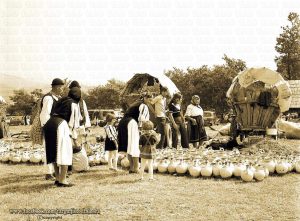 O bunicuţă mândra de de nastruşnicele ei nepoţele iscodeşte cu privirea oferta de ulcioare, iar în spatele carului cu roţi de lemn, o pereche de boi toropiţi de caldură stau tolaniţi si sfidează trecerea timpului ce parcă se scurge cu mare, mare leneveală .